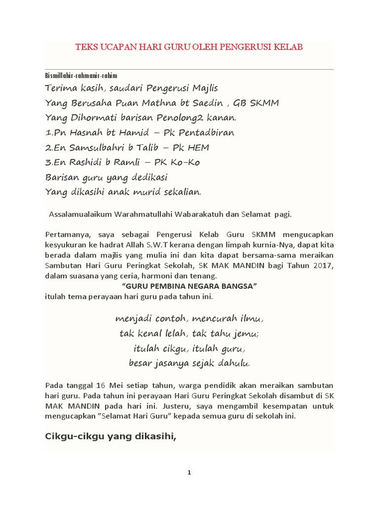 Teks Ucapan Hari Guru Oleh Pengerusi Kelab PDF